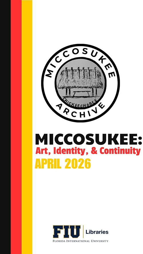 FIU Libraries Special Collections presents an exhibition on Miccosukee art, history, and tradition. Curated by Embassy Fellow and Archives Technician Kendal Osceola (Tahkoshahathee clan), the exhibition features contemporary works by community members, Lego patchwork designs, patchwork clothing, and archival photographs on display for the first time.